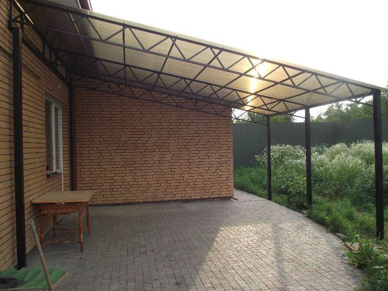 Поэтому компания "НавесСтрой" настоятельно рекомендует не экономить, а усилить каркас навеса из профильной трубы более жёсткими профилями с увеличенной толщиной металла и количеством несущих ферм.